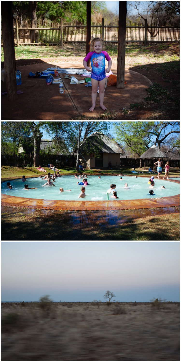 - The swimming pools are loads of fun. My own childhood memories of Kruger are being in camp swimming pools and making whirlpools with everyone in the pool. Once it is strong enough you lift your feet and just let the water take you round and round. Braden loved this this year and it is so special watching your child doing something you remember loving so much. I have a pic below of the whirlpool everyone was making at Satara camp. Tip: If you are there in Summer try make sure you stay at a camp where there is a pool, most of the camps do and if you staying at one of the smaller ones that don’t you are allowed to go swim at a nearby camp as long as you are staying overnight in the park.